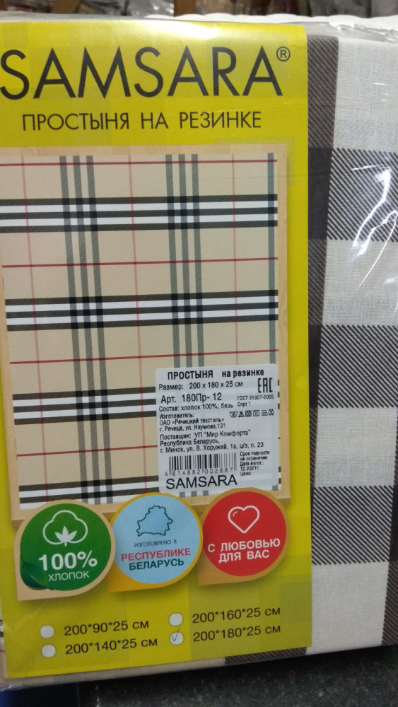 Простыня на резинке (200*180*25 см), арт. 180Пр-12 (бязь)