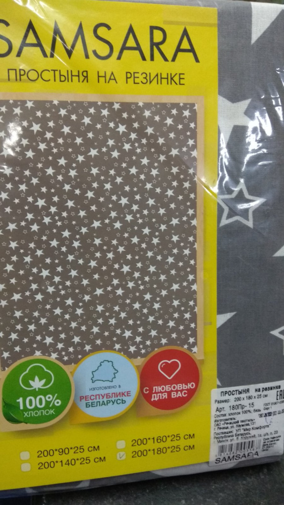 Простыня на резинке (200*180*25 см),арт.180Пр-15 (бязь)