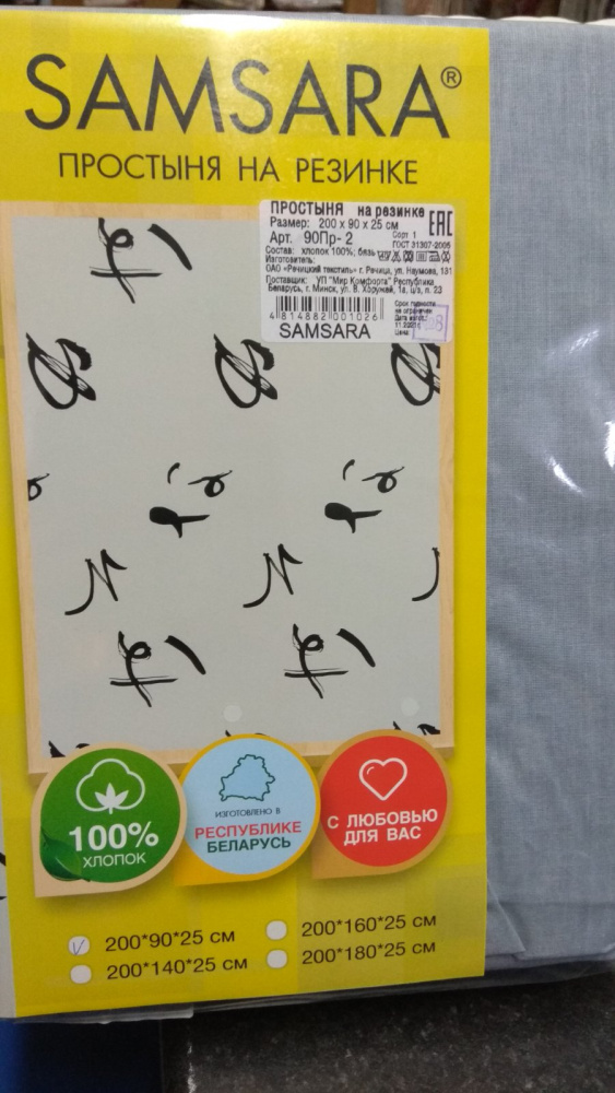 Простыня на резинке (200*90*25 см), арт. 90Пр-2 (бязь)