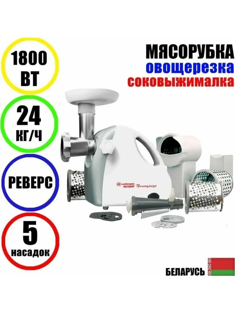 Электромясорубка КЭМ-П2У 305 (с ручкой) Пиковая мощность: 300Вт Номинальная мощность: 1800Вт Реверс: есть Цвет: бело-серый Решетки: 2, для колбас, сосисок. - произвести резку, шинковку и истирание овощей и фруктов; измельчить яйца, сваренные вкрутую, сыр. - получить сок с мякотью из мягких овощей, фруктов и ягод.