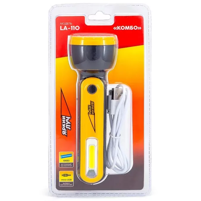 Фонарь ЯРКИЙ ЛУЧ LA-110 "Комбо" аккум, направл. 100лм +боковой COB 110