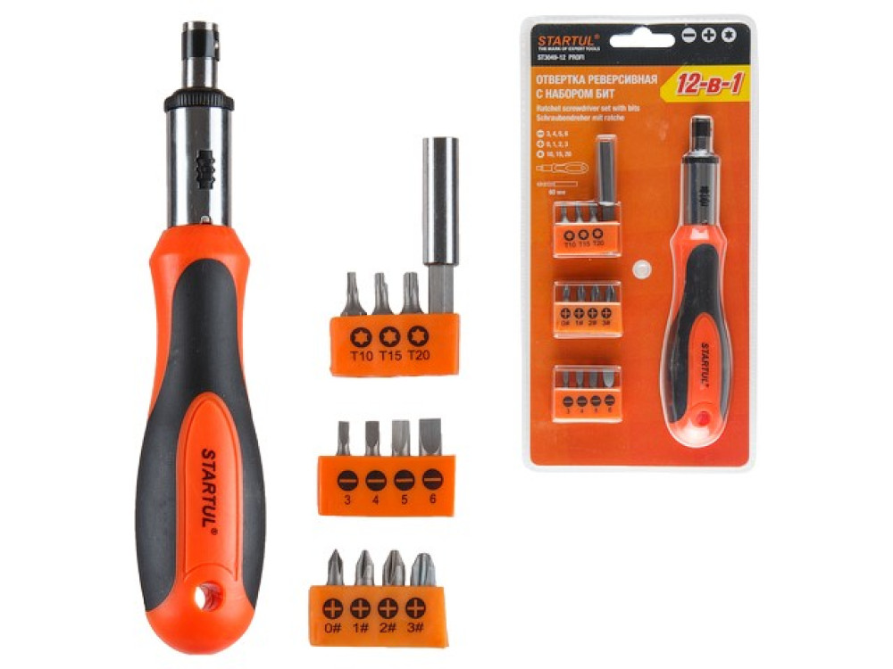 Отвертка реверс. с набором бит 12-в-1, арт.ST3049-12