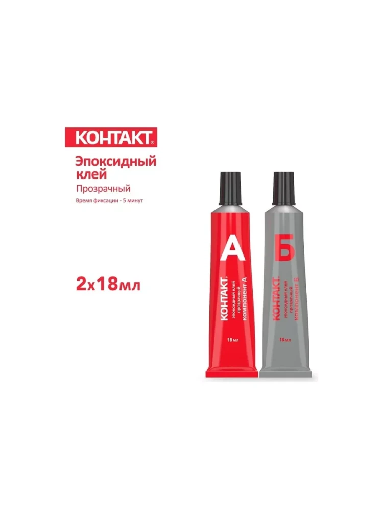 Клей КОНТАКТ эпоксидный 2*18мл, прозрачный, арт.КЭ 144-Б36, блистер