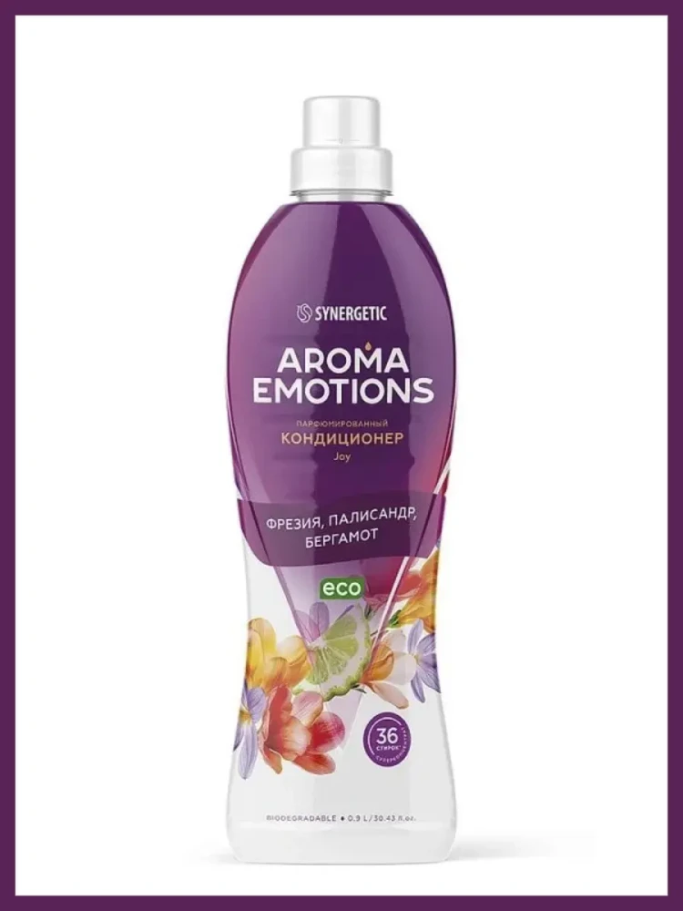 Биоразлагаемый кондиционер для белья SYNERGETIC "EMOTIONS" Joy / Радость – это не просто средство для ухода за тканью, это путешествие в мир ароматов, возможность выразить свою индивидуальность и добавить немного роскоши в повседневную жизнь. Кондиционер бережно ухаживает за всеми типами ткани, придаёт мягкость белью после стирки, обеспечивает лёгкую глажку. Обладает антистатическим эффектом. Суперконцентрированная формула обеспечивает экономичный расход средства. Биоэнзим целлюлаза препятствует появлению катышков и ворсинок, сохраняет первоначальный внешний вид и цвет ткани даже после многократных стирок, не разрушая её структуру. Растительный биолипид в составе кондиционера снижает риск возникновения раздражения кожи и способствует восстановлению её липидного слоя. Парфюмерная композиция Joy открывается освежающими нотами сочного бергамота, которые плавно переходят в нежные аккорды фрезии с лёгкими фруктовыми нюансами. В сердце аромата — ноты зелёного чая, которые дарят травянистую прохладу и ощущение чистоты. Палисандр добавляет тёплые древесные оттенки, а жасмин привносит элегантную цветочную сладость, создавая гармоничное сочетание свежести и утончённости. Завершают композицию мягкие мускусно-амбровые оттенки. Аромат представляет собой баланс между свежестью и теплотой, гармонией и элегантностью. Удивительно бодрящий и радостный аромат со свежими фруктовыми оттенками завораживает и улучшает настроение, оставляя на ткани приятный шлейф до 150 дней при хранении белья благодаря инкапсулированной парфюмерной композиции. Кондиционер подходит для стирки всех типов тканей в стиральных машинах любого вида и для ручной стирки, для бытового и профессионального использования на предприятиях торговли, общественного питания, в гостиницах и в жилищно-коммунальном хозяйстве, в детских дошкольных и школьных учреждениях, а также учреждениях здравоохранения. Биоразлагаемые компоненты не вредят микрофлоре септических установок при использовании средства в соответствии со способом применения.