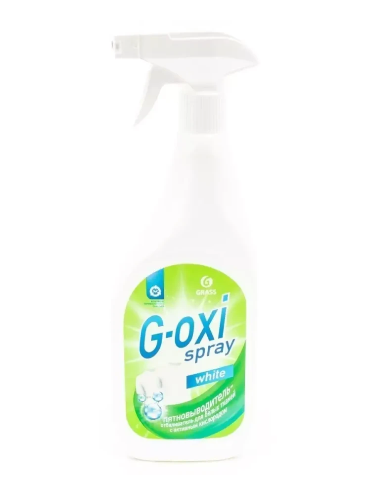 Пятновыводитель-отбеливатель "G-oxi spray". Благодаря активному кислороду, пятновыводитель-отбеливатель для белых и светлых тканей удаляет загрязнения различного происхождения и усиливает белизну. Средство бережно, но очень эффективно борется со следами грязи, травы, ягод и другими видами загрязнений. Пятновыводитель для белья абсолютно безопасен для людей с чувствительной кожей. Бытовая химия для стирки подходит для очищения белых и светлых тканей, справляется даже с въевшимися и застарелыми пятнами от сока, вина, чернил, краски! Можно использовать при машинной и ручной стирке, при замачивании. Эффективен в широком диапазоне температур: от +30 до +90˚C. Удобный формат спрея и большой объем 600мл позволяют экономично расходовать средство!