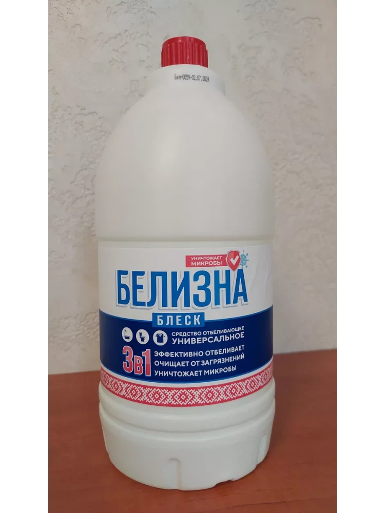 Универсальное отбеливающее и дезинфицирующее средство на основе гипохлорита натрия. Предназначено как для стирки белья, так и для обработки сантехники, кафеля, полов. Состав: гипохлорит натрия - 5 % или более, но менее 15 %.