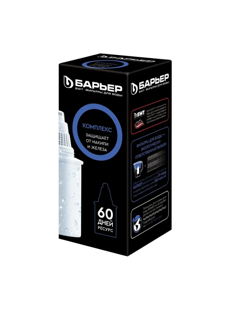 Сменная кассета «Барьер Комплекс» предназначена для комплексной очистки водопроводной воды от органических и неорганических примесей, хлора и хлорорганических соединений, а также эффективно удаляет различные формы растворенного железа в воде, препятствует образованию накипи, устраняет неприятные запахи и металлический привкус. За счет содержания в составе смеси ионообменных волокон и смол, подходит для избавления от высокой концентрации разных форм растворенного железа и тяжелых металлов. Кассета имеет уникальную технологию очистки: Кокосовый активированный уголь, обработанный серебром: предотвращает рост бактерий. Кокосовый активированный уголь: удаляет хлор и хлороганику. Смесь ионообменных смол: удаляет соли жесткости, снижает образование накипи Ионообменное волокно: удаляет растворенное железо и тяжелые металлы Характеристики: ресурс очистки: зависит от качества исходной воды (до 350 л) для холодной воды (от 5 до 35°C) уникальная конструкция кассеты позволяет использовать весь объем засыпки для фильтрации воды подходит к любым кувшинам «Барьер». Резьбовое крепление кассеты исключает попадание неочищенной воды из воронки кувшина в отфильтрованную воду.