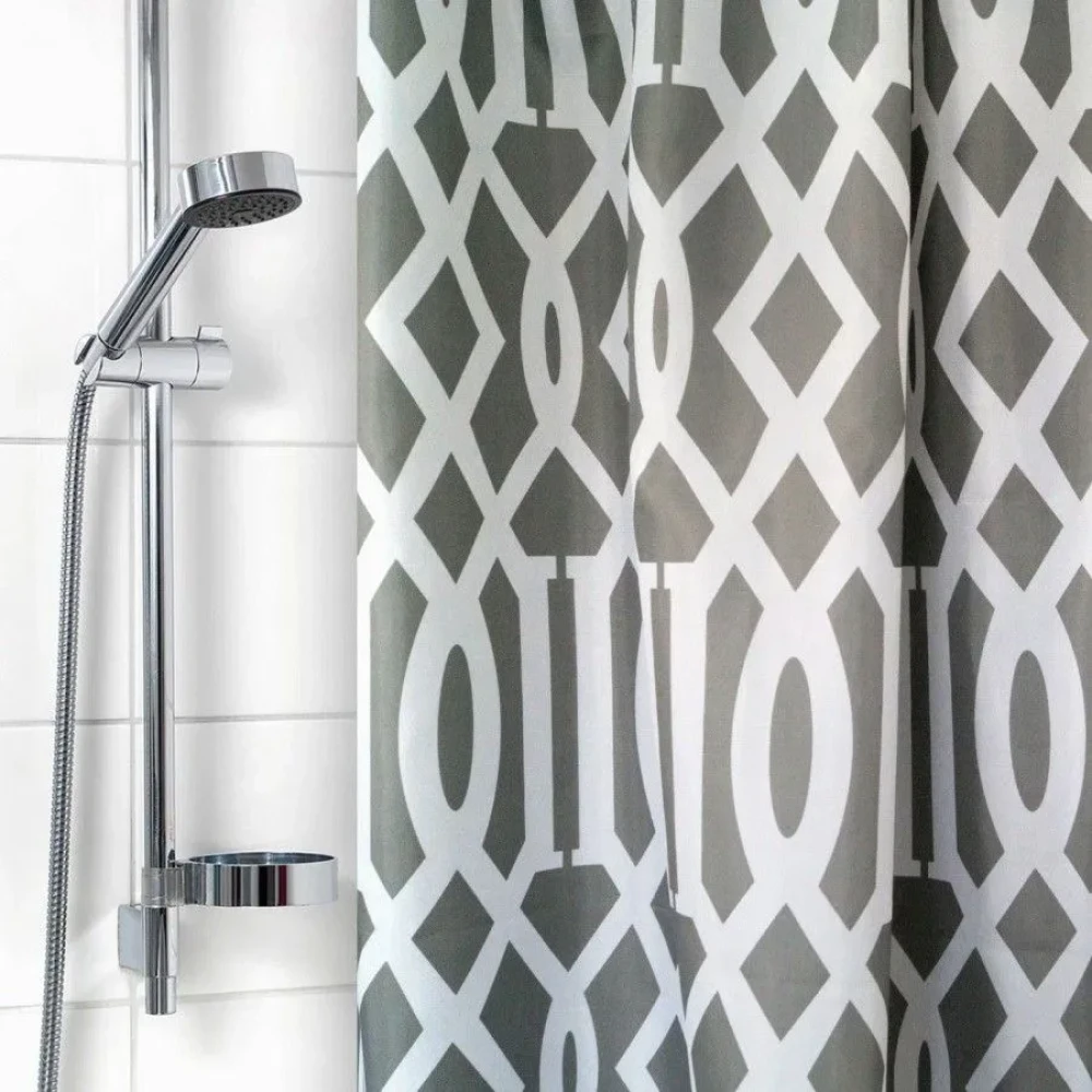 Штора д/в.к. "Решетка серая" 180х180 см. с кольцами 13 шт., полиэстер