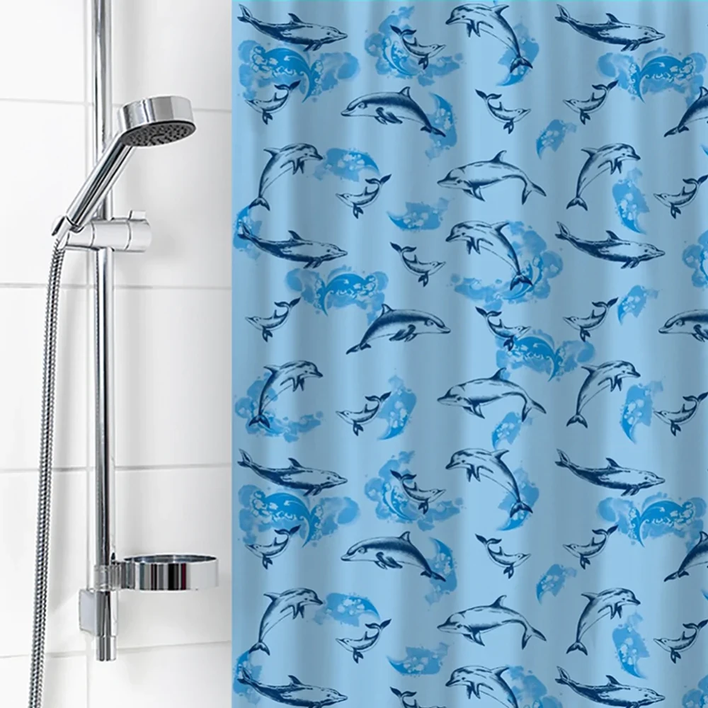 Штора п/э д/ванной "Дельфины голубой" 180х180