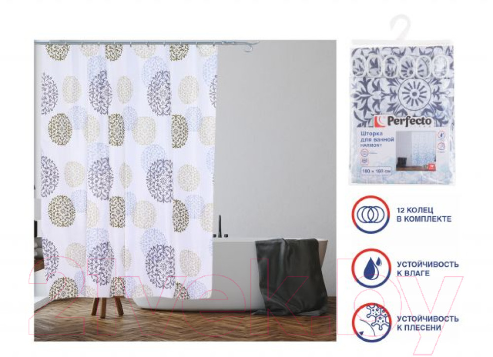 Шторка д/ванной, 180x180 см, Harmony, блики, арт.36-118017
