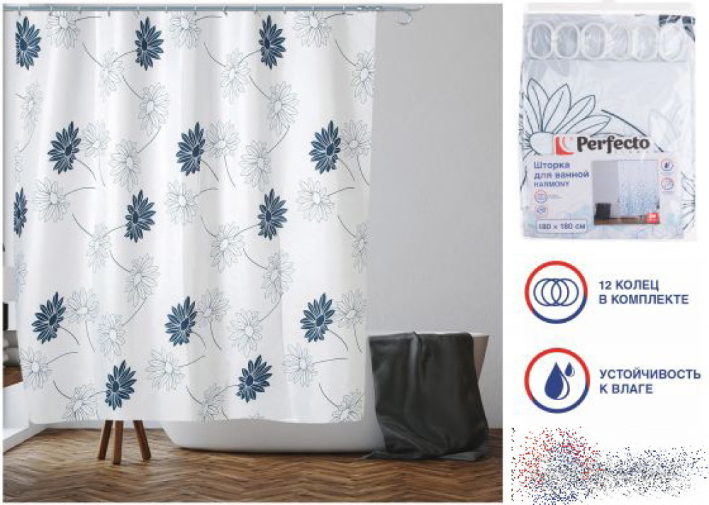 Шторка д/ванной, 180x180 см, Harmony, цветы, арт.36-118015