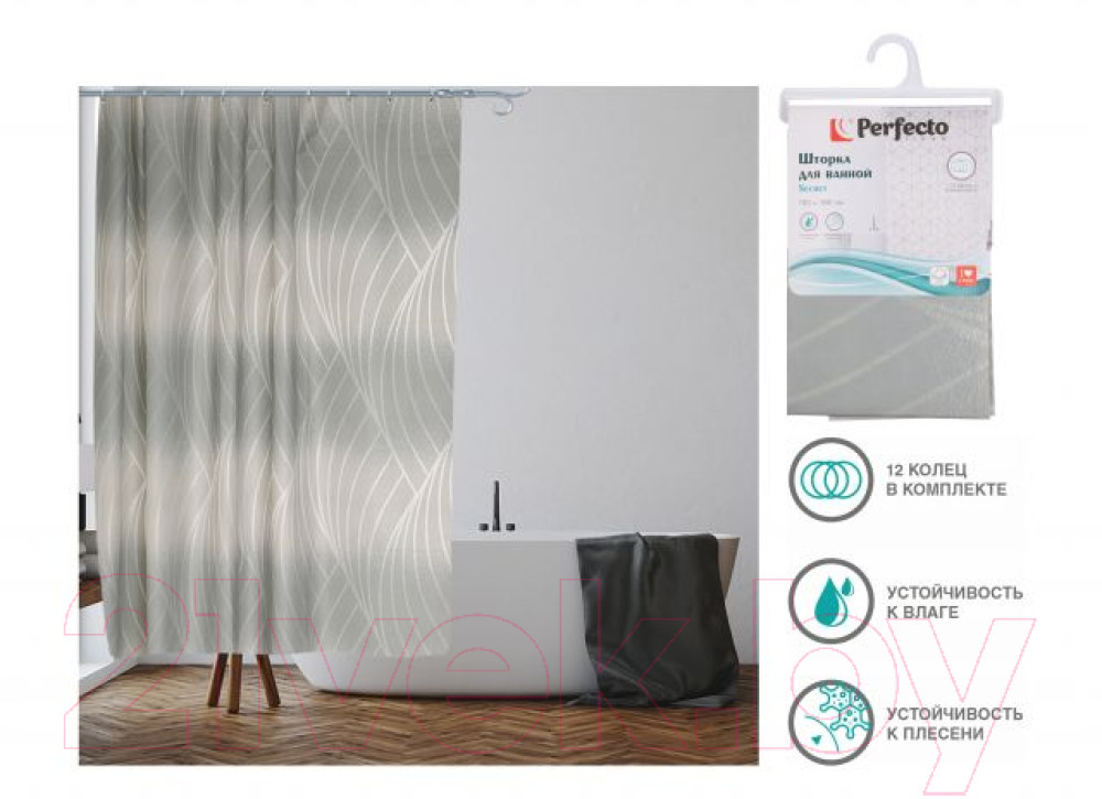 Шторка д/ванной, 180x180 см, Secret, жемчужная, арт.36-118006