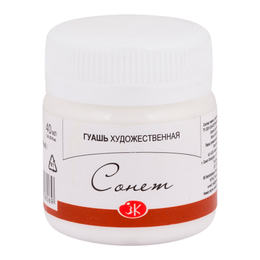 Краски гуашевые "Сонет" 101 белила титановые, 40 мл., банка, 3620101
