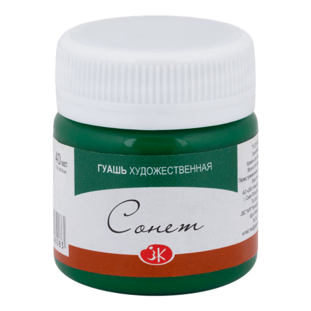 Краски гуашевые "Сонет" 710 зеленая темная, 40 мл., банка, 3620710